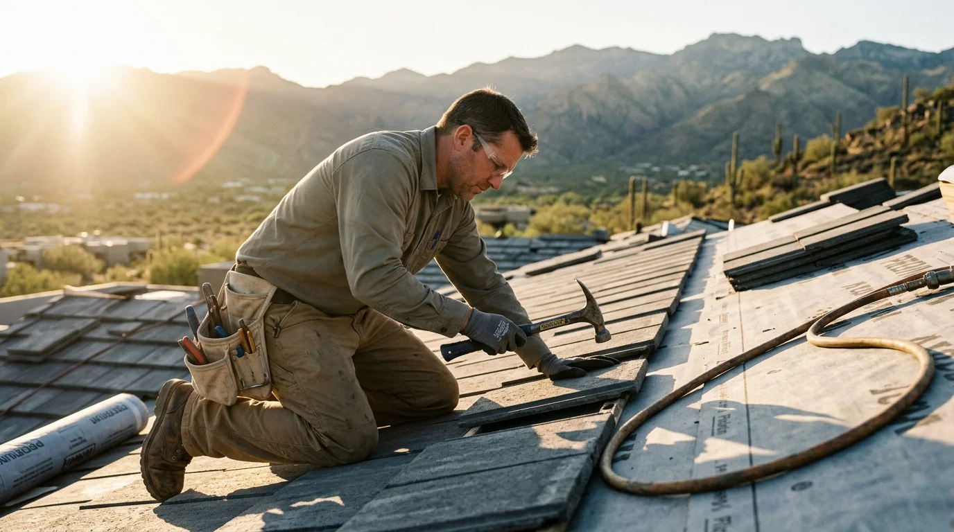 Ensure they specify the use of 'High-Heat' synthetic underlayment, as standard felt paper will disintegrate in Tucson's attic temperatures.
